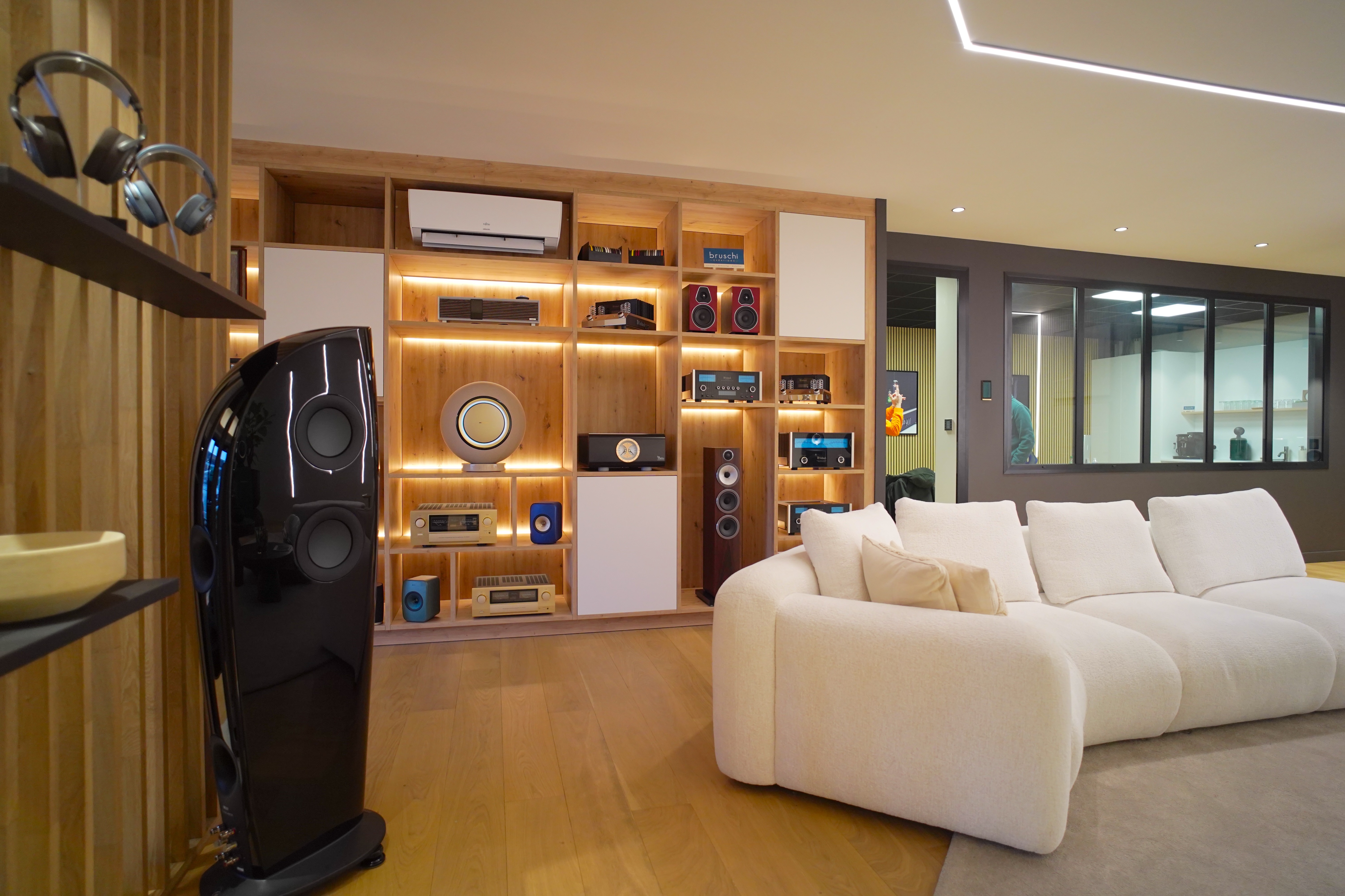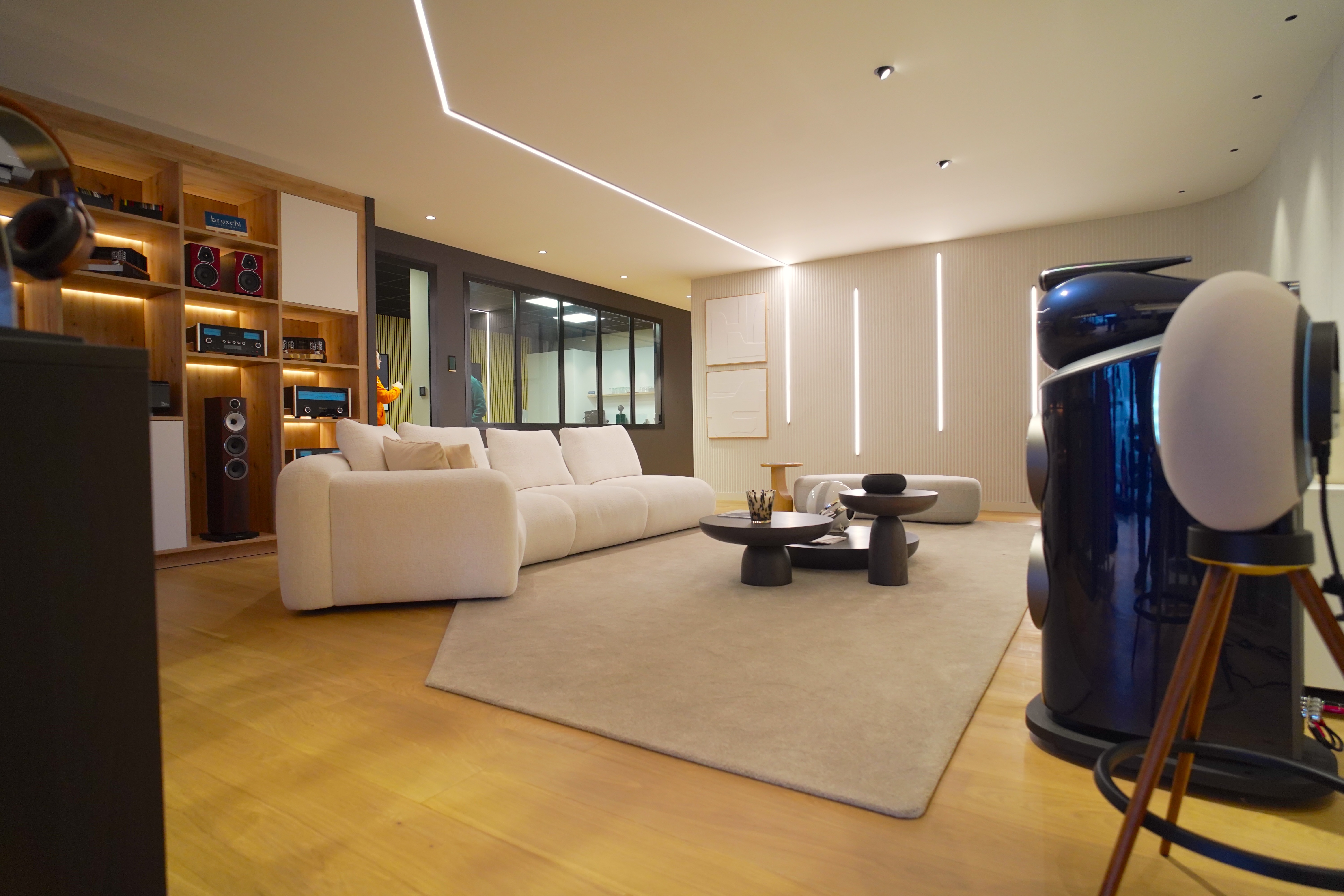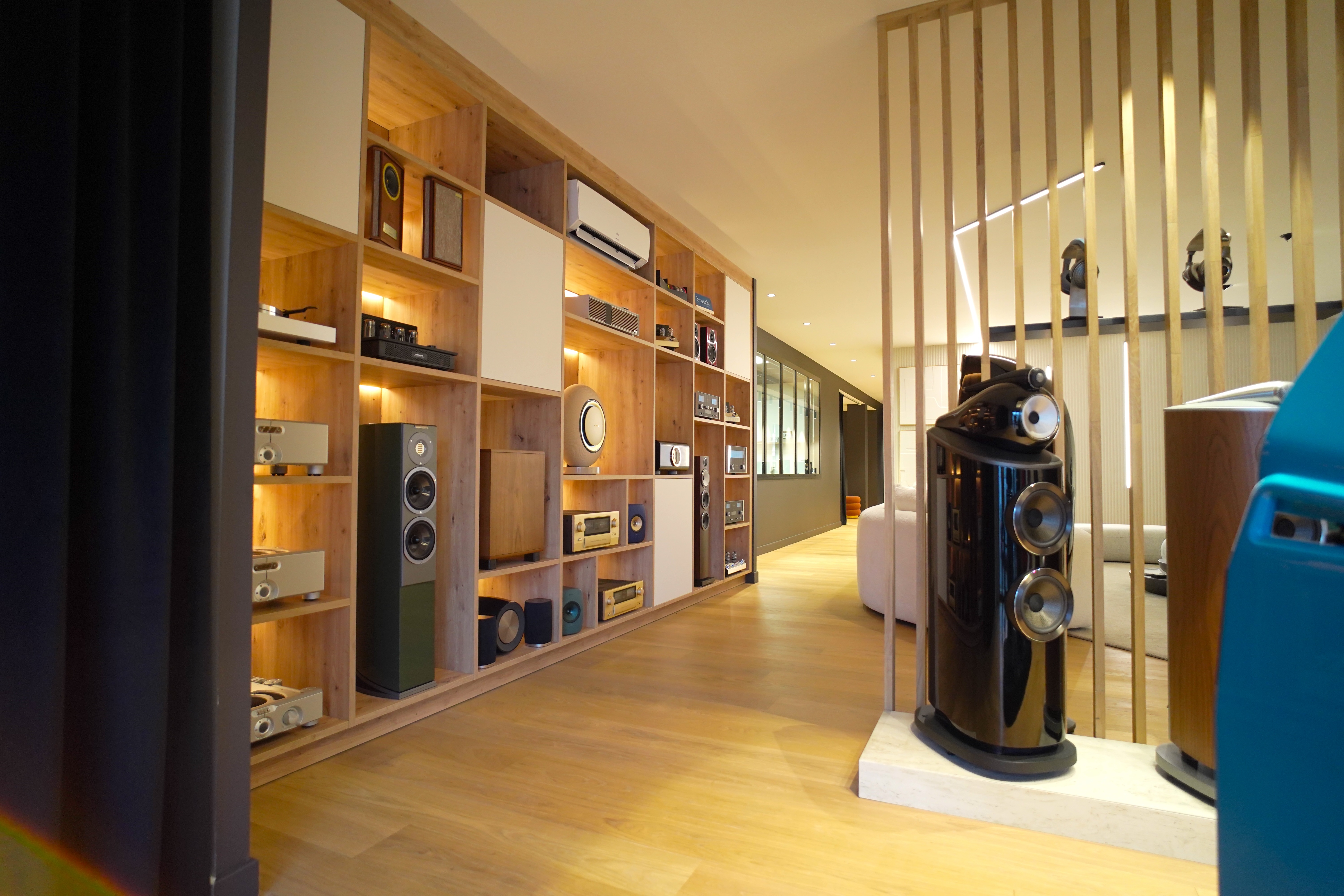 PARQUET MODERNE s'est chargé de l'étude technique, du conseil jusqu'à la livraison, en passant évidemment pas la pose de parquet et l'habillage de tout le showroom